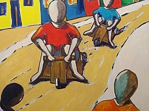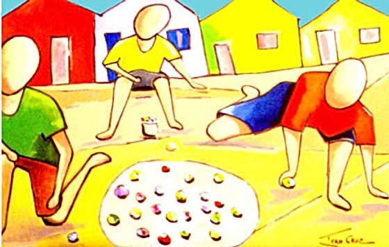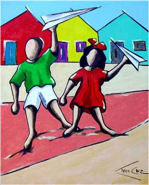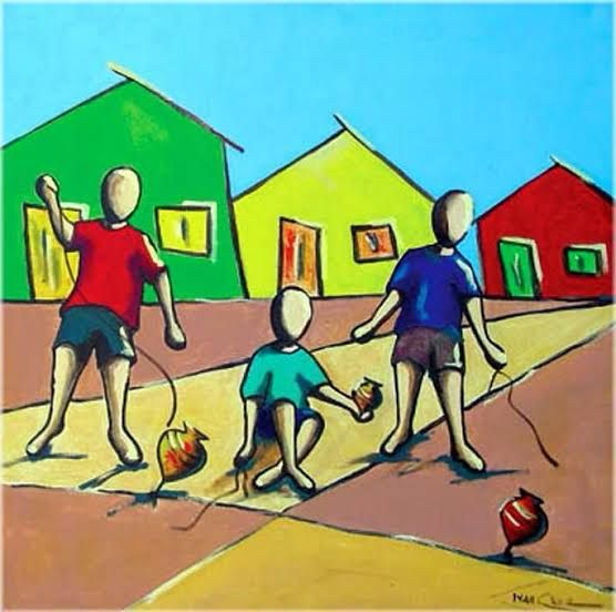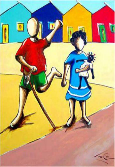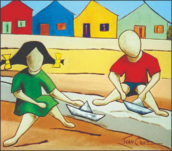 A memória desse tempo feliz da infância se transformou em uma obra artística com mais de 500 quadros e esculturas que retratam crianças brincando com pipas, piões, amarelinha, bola, boneca, corda e muito, muito mais…