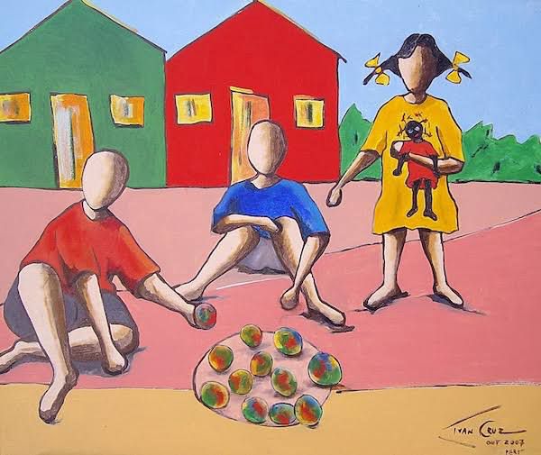 Suas telas de cores fortes e variadas chamam a atenção das crianças, que se divertem junto aos adultos que entram num verdadeiro “túnel do tempo” ao rever as gostosas brincadeiras. As imagens de Ivan Cruz podem ser vistas reproduzidas em vários objetos, tais como: camisetas, canecas, jogos etc.